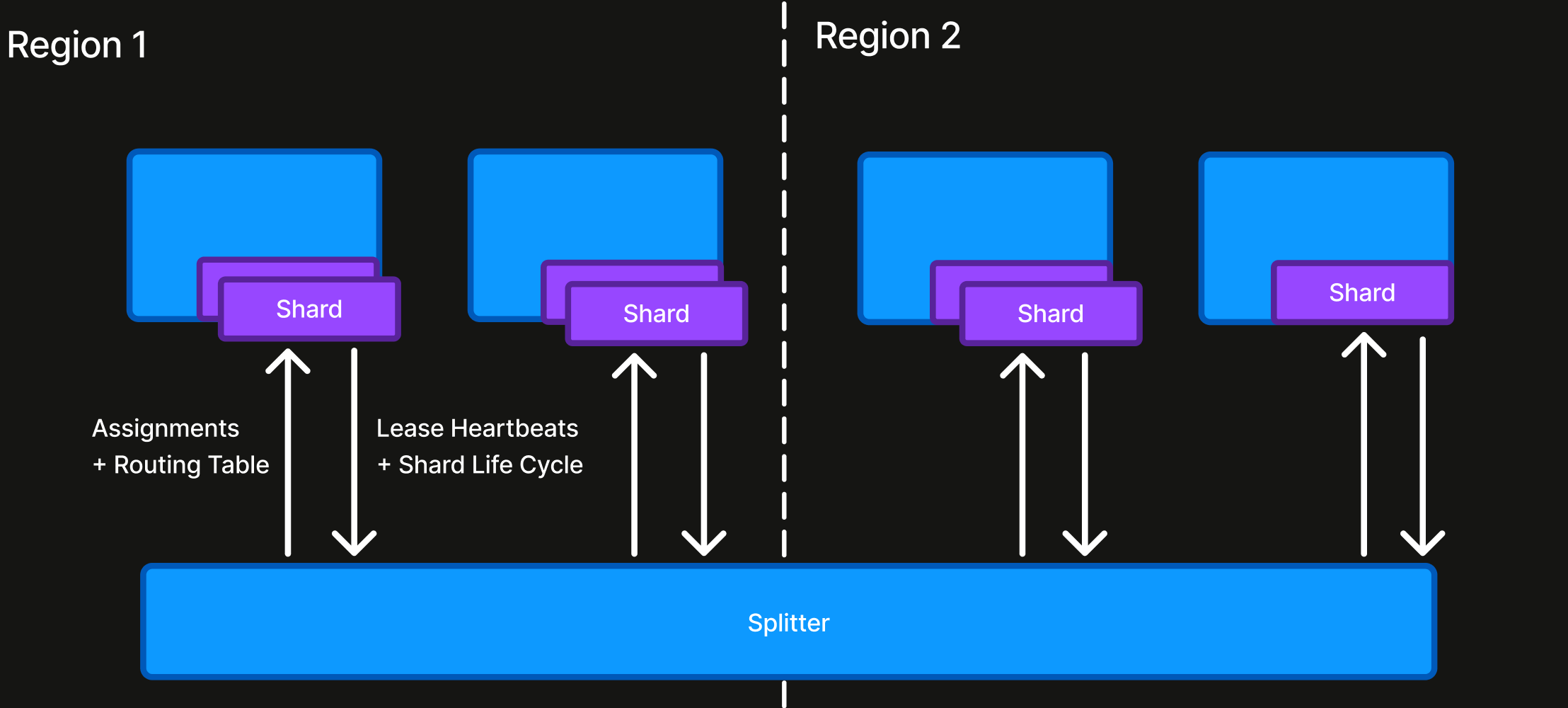 The Work Distribution Service is an opinionated control-plane service for shard management. Services integrated with Splitter can take advantage of powerful built-in primitives for shard ownership and routing to satisfy strict latency, correctness and reliability requirements.